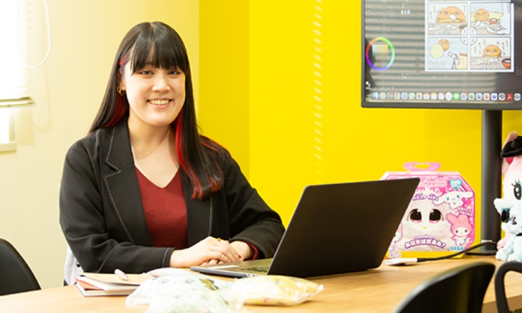 玩具会社でIP※のためのキャラクターデザインを手掛けています。新しいキャラクターの提案や、すでに展開中のキャラクターのコンテンツ制作などが主な業務です。感覚としてはイラストレーターに近いです。自分たちで世に出したキャラクターを喜んでもらえると、とても嬉しくなります。見ず知らずの方が、私がデザインしたキャラクターについてSNSで熱く語っているのを見つけたときには、思わず涙が出そうになりました。