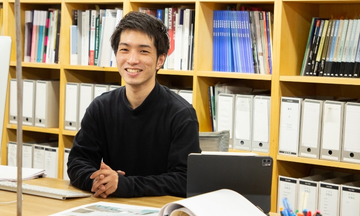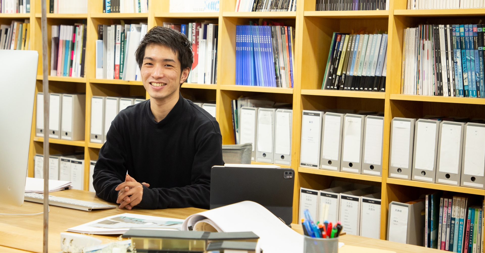 別荘やオフィスビルなど建物の建築デザインをしています。2年目の現在は、主担当の方のもとで設計アシスタントとして仕事をすることが多いです。モデルの検討や、パースの作成、図面の作図など、プロジェクトをトータルで支えています。