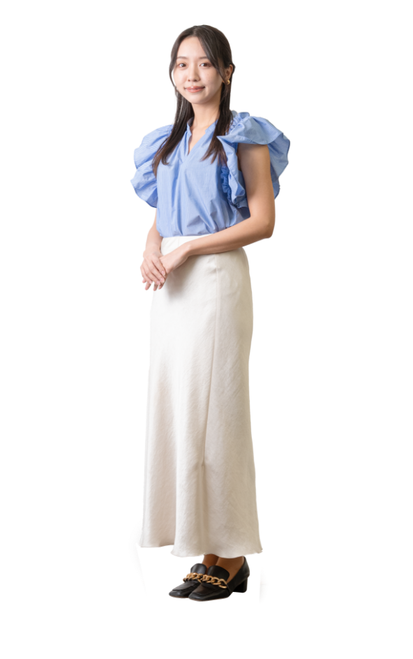 その結果、ブルーのフリルシャツとホワイトのタイトスカートを選びました。