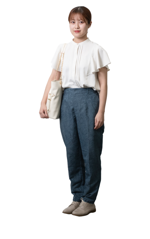 私服参加の指定があったため、オフィスカジュアルで参加しました。スーツとは異なる明るい服装を選び、白と青を基調に爽やかさを意識しました。