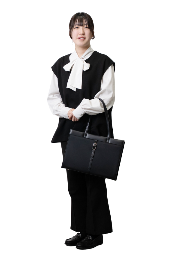 スーツ着用は必須ではなく、どちらかというと私服推奨でした。そのため、オフィスカジュアルより少しフォーマルなリボン付きブラウスに黒いジレ、黒いパンツという服装で面接に臨みました。きちんと感を意識しつつも、自分らしさを出せるスタイルを選びました。