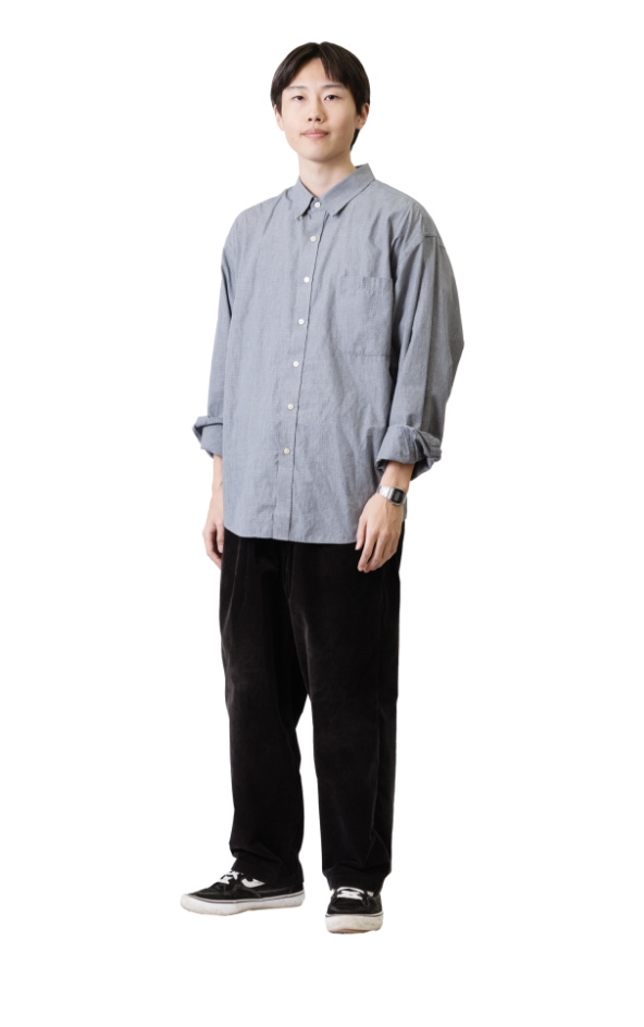 私服の指定があったため、ブルーのシャツと黒のパンツを選びました。