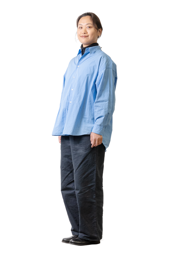 私服指定だったため、フォーマルな青いシャツを選びました。