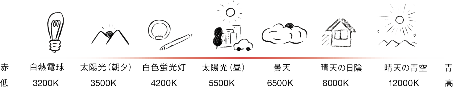 光の色味を温度にたとえて「色温度」といい、それを補正するカメラの設定がホワイトバランス補正です。